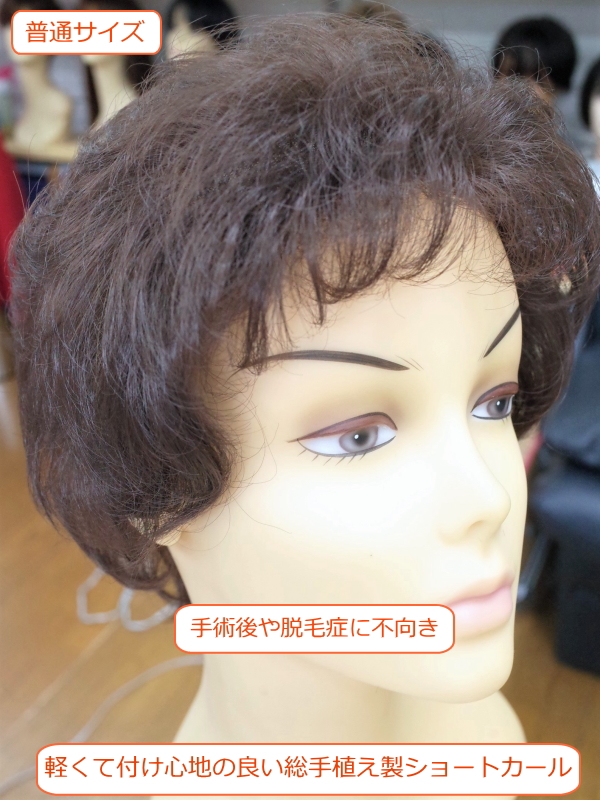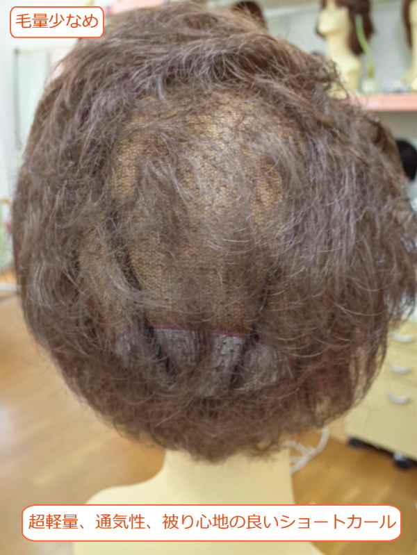軽くて付け心地の良い総手植え製ショートカール 毛量少なめ