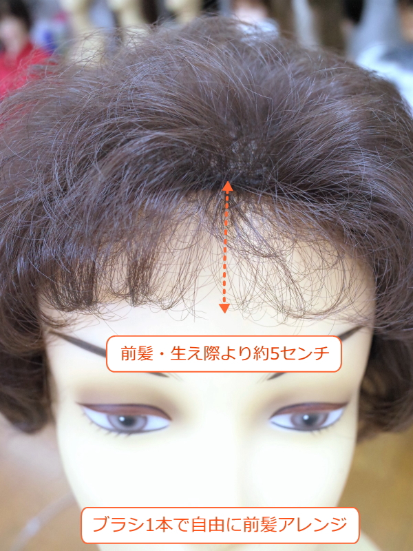 前髪の上げ下げもブラシ1本で思いのまま自然な髪の流れで全体的に毛が立ち上がりボリュウムアップをと考えている方に是非お使い頂きたいウィッグです。
