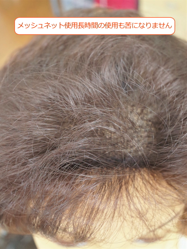 1本1本丁寧にウィッグネットに植毛、自然さ、軽さ、通気性、被り心地がとても良く毎日のお使いも苦になりません。