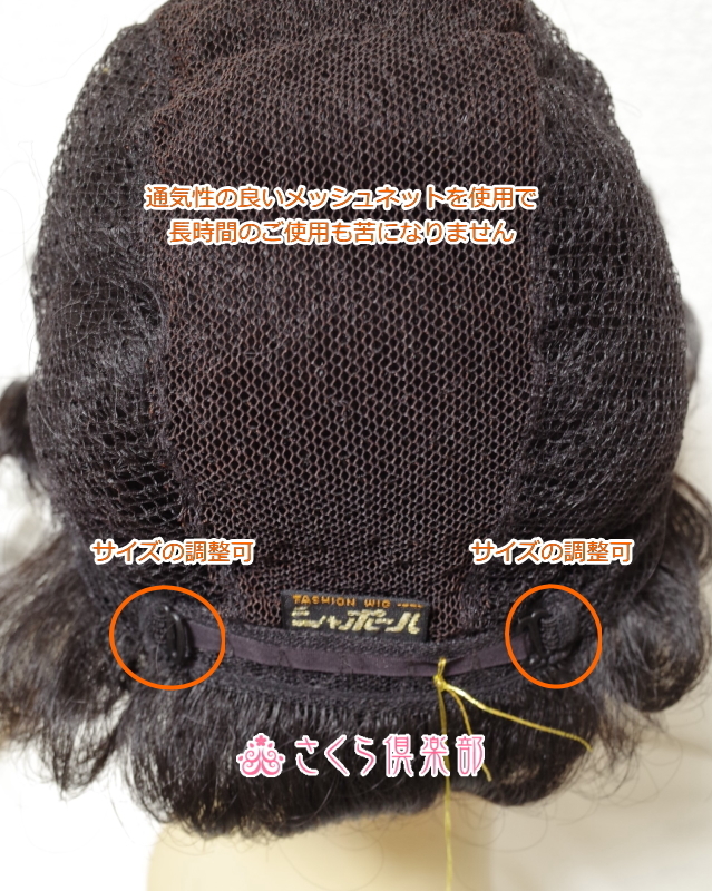 軽量で被り心地通気性の良いまげ風ショート 毛量多め