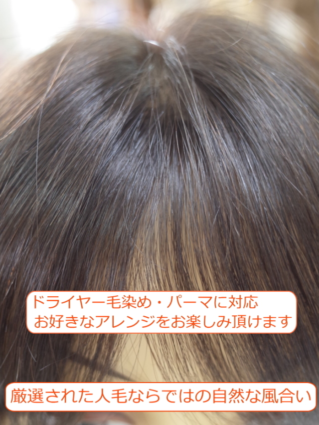 人毛100%で自毛との相性も抜群で使い込む程に自毛と馴染み長期間にわたりご使用頂けます。