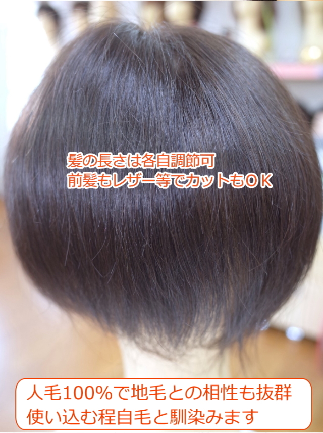 人毛100%総手植え製ハンドメイドで見た目も大変自然で通気性も良く長時間の使用も苦になりません。