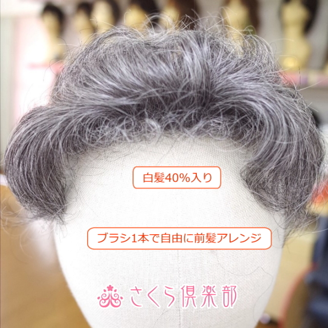 穴あき部分ウィッグで自毛を引き出しより自然に。シニア・高齢者向けの白髪入り40%・100%軽くて付け心地の良いショートカールで頭部全体をボリュウムアップ。アレンジ自由で通気性が良い為1日中のご使用も苦にならずご好評頂いております。