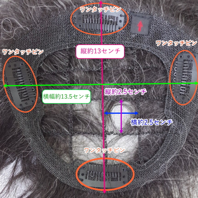 総手植え製 ハンドメイド・人工毛・ワンタッチピン4つ付きでしっかり装着 穴あきタイプ