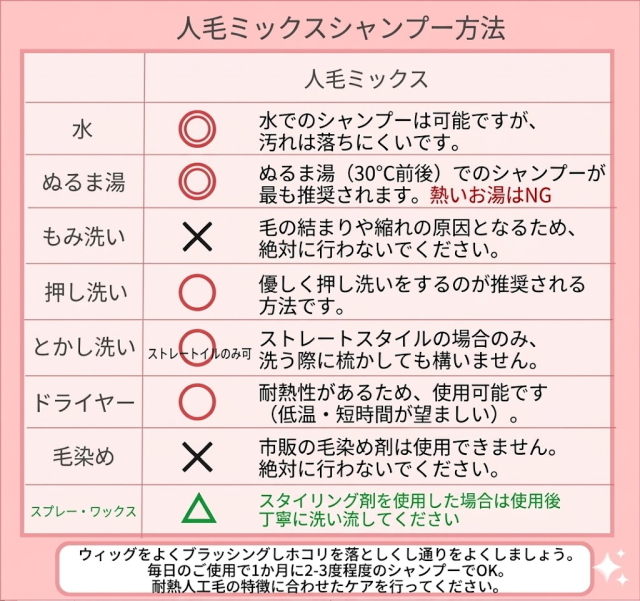 ご自宅のシャンプーで簡単に洗うことができます。形状記憶性の高い人工毛を使用しているため、洗った後も自然なカールが持続し、セットの手間がかかりません。
